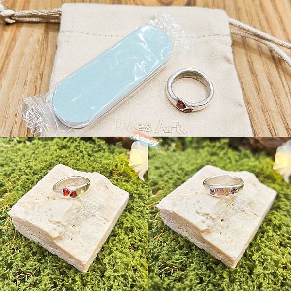 之後保養時用白色拋光面就能讓戒指呈現亮銀色